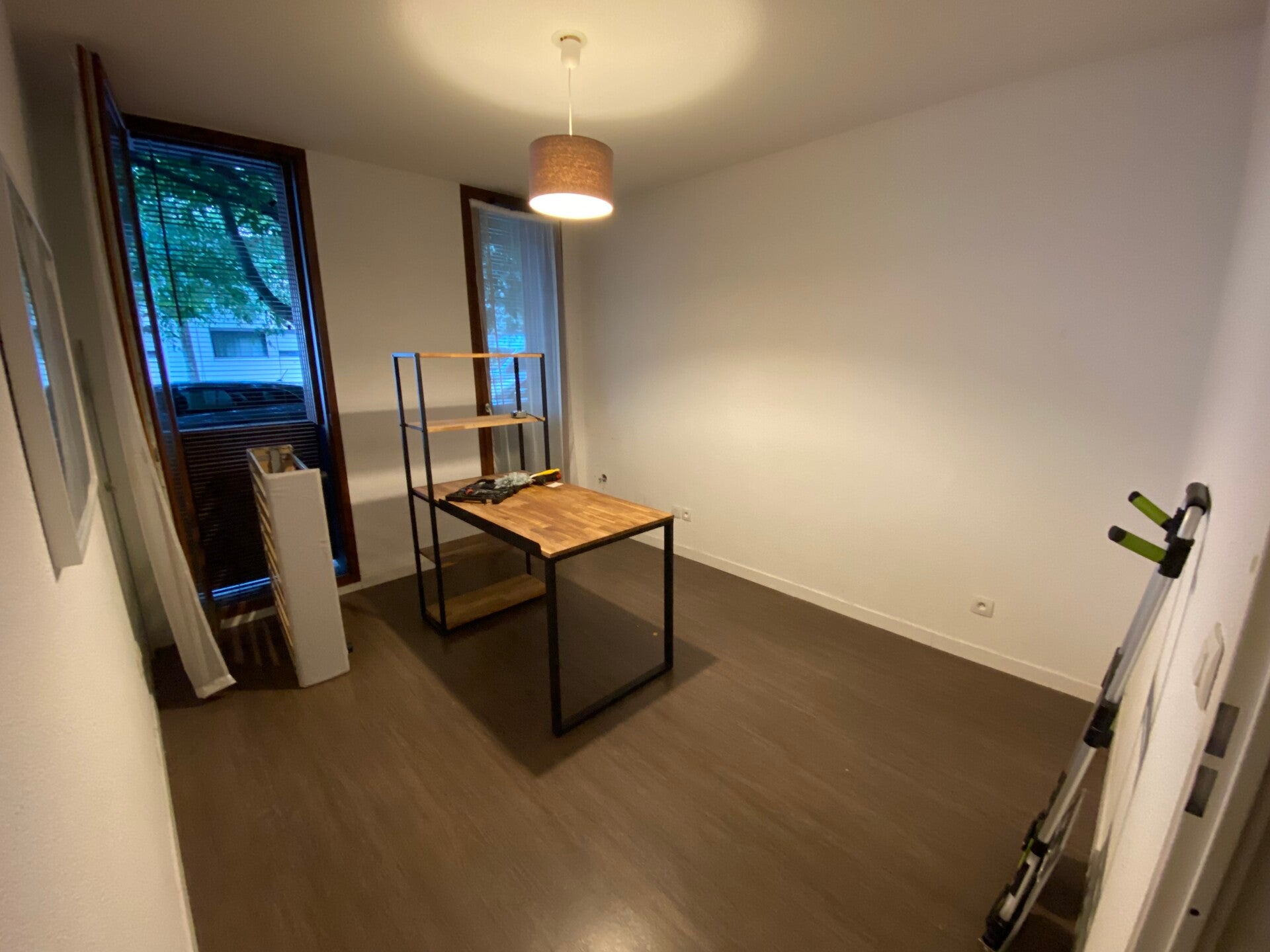 Le plan de travail sur lequel j'ai finalement fixé une multiprise sécurisée, sert à créer un coin d'appoint pour les appareils électriques et robots utiles pour la préparation en cuisine si l'on ne veut pas le faire dans la cuisine même. Plan pratique également pour plier le linge.